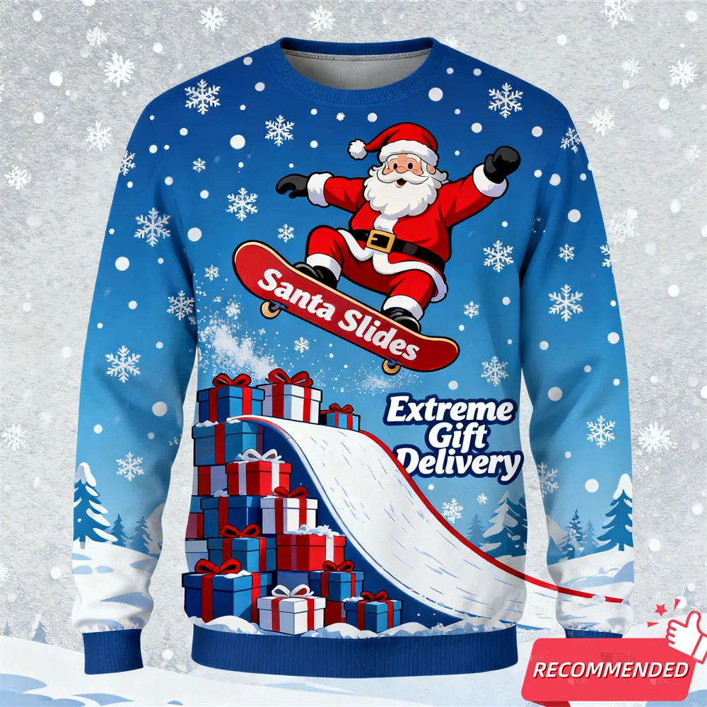 Christmas Santa Claus Cartoon Clothes Fashion Xmas Ugly Sweater 3D Printed Farmer Astronaut Pullover Casual Funny Crewneck Tops