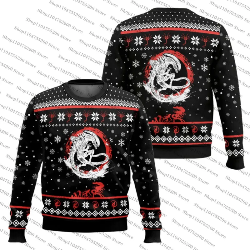 Alien Ugly Christmas Sweater Movie SweaT T Shirt UFO Xenomorph Xmas s long or short sleeves vintage Washed streetwear