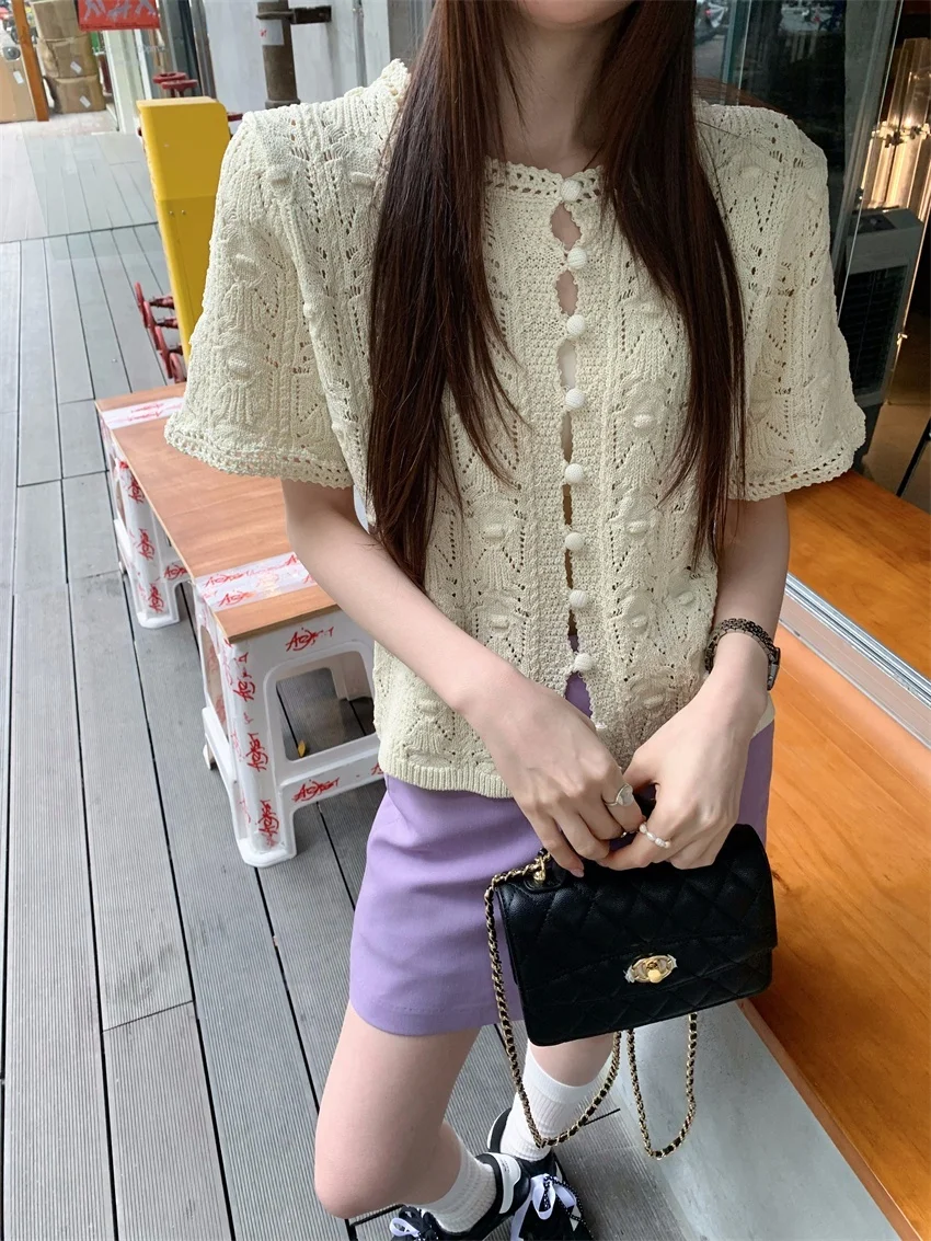 Alien Kitty Summer Office Lady Sweaters Women Chic Knitted Short Sleeve Slim Mini Bodycon Skirts 2025 High Street Sweet Gentle