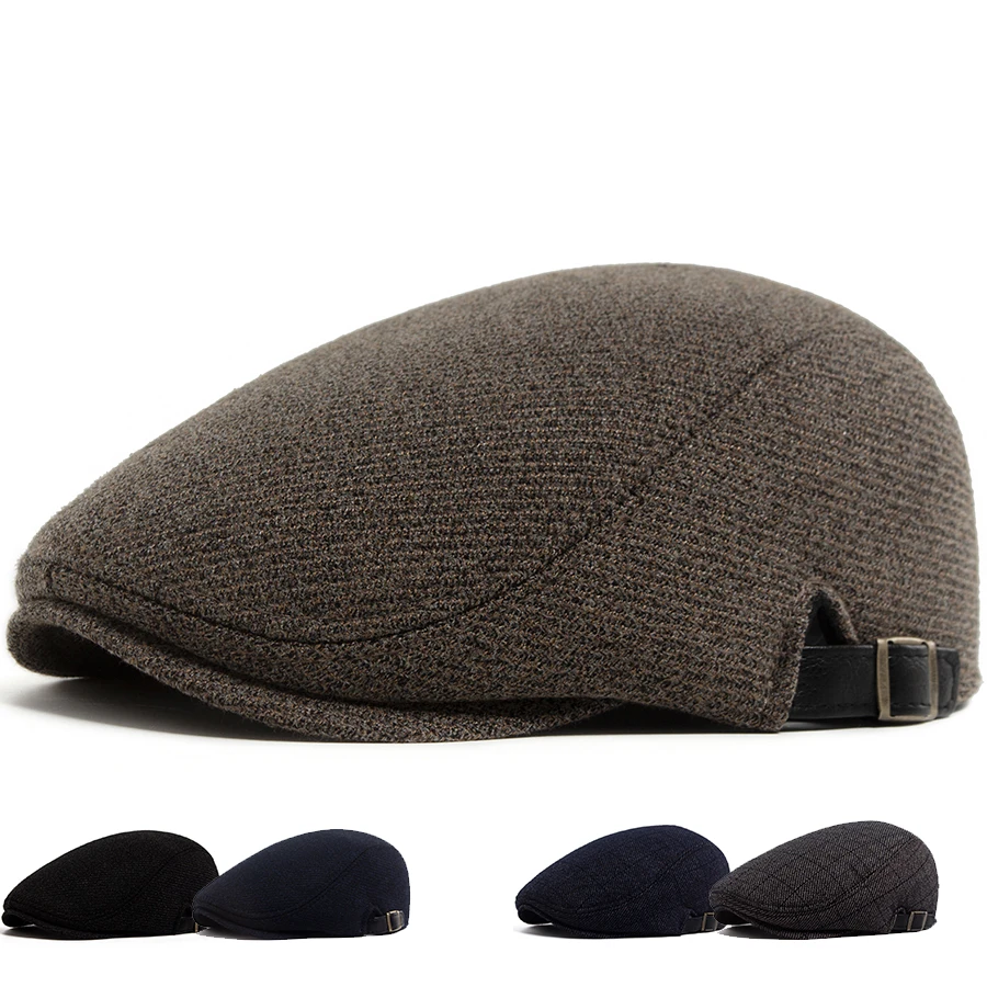 Twill Grid Beret Men Winter Plus Velvet Warm Newsboy Hat Fashion Vintage Casual Flat Cap Autumn Retro Men's Berets Adjustable