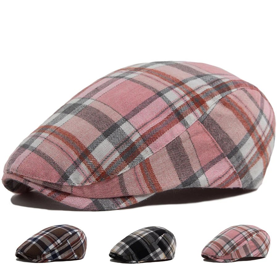 Y2k Plaid Beret Summer Women Hat Vintage Caps For Men Casual Female Sun Soft Flat Hats Visor Newsboy Cap Unisex Adjustable New