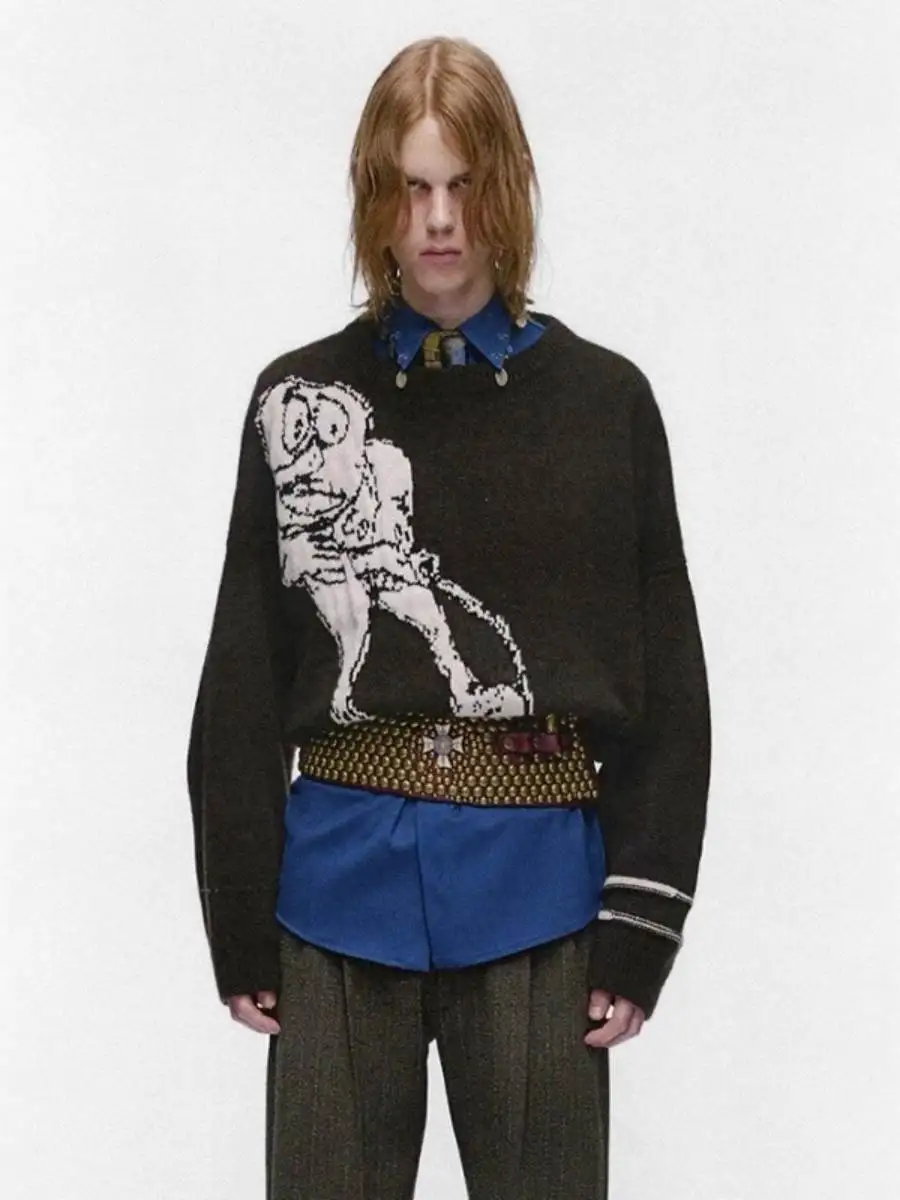 New unisex Y2K aesthetic pattern knitted sweater with street style printed on utility poles and poles for warmth