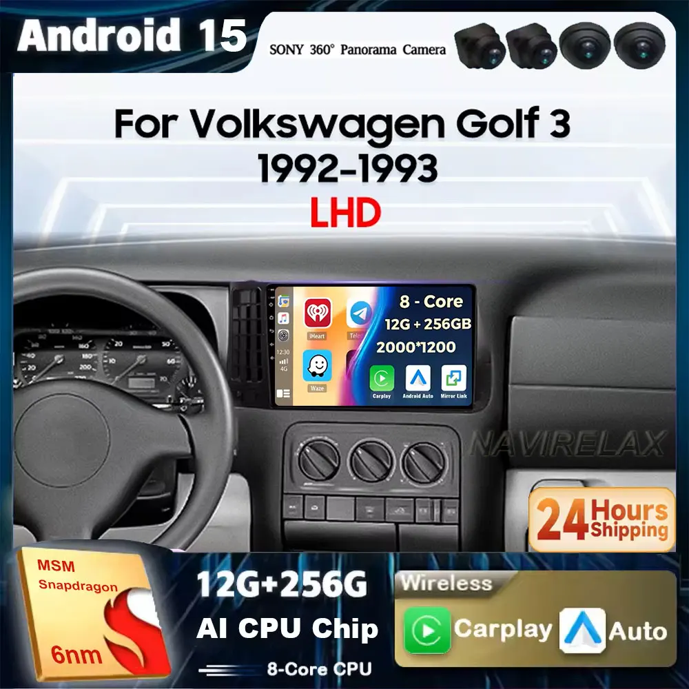 Android 15 Core Car Radio Multimidia Video Player For VW Volkswagen Golf 3 1992 -1993 Navigation GPS Carplay Auto 2din Head Unit