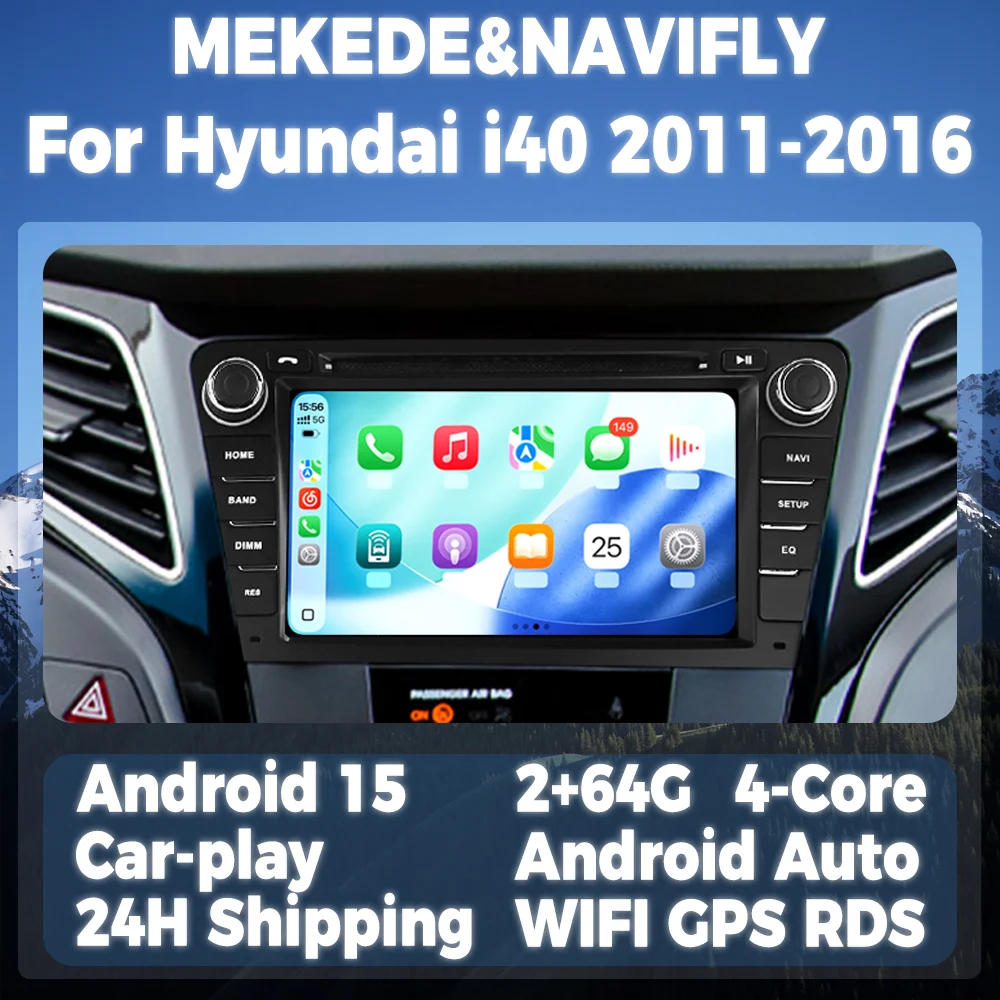 Wireless CarPlay Android Auto Multimedia Display Screen For Hyundai I40 2011-2019 7inch Android 15 Car Radio Intelligent System