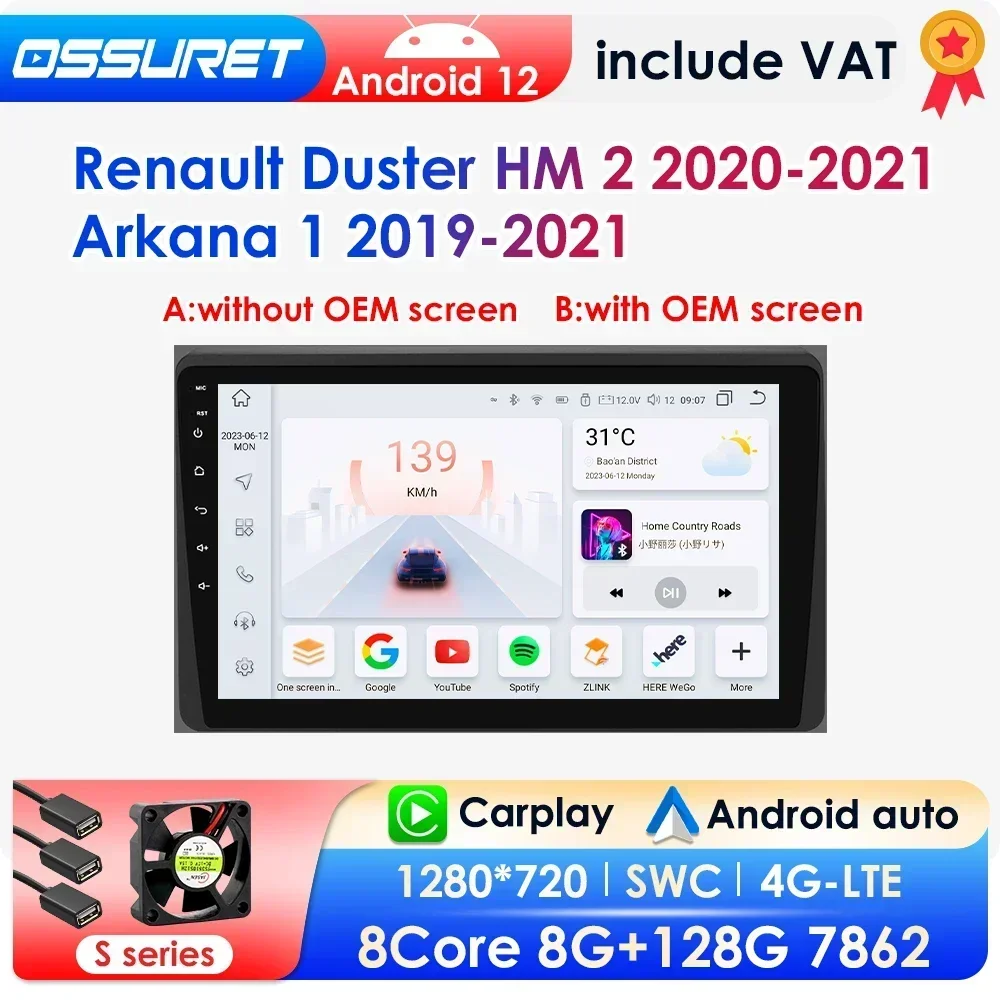 2Din Android Car Radio For Renault Duster HM 2 II 2020-2021 Arkana 1 I 2019-2021 Multimedia stereo Navigation GPS Carplay 7862