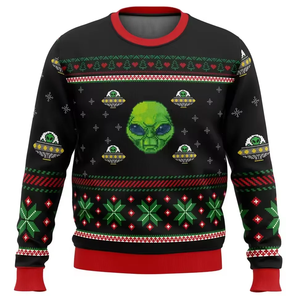 Funny Alien Graphic Ugly Christmas Sweater For Men Fashion Streetwear 3D Printed Xmas Sweatshirts Cool Oversized Pullovers Tops