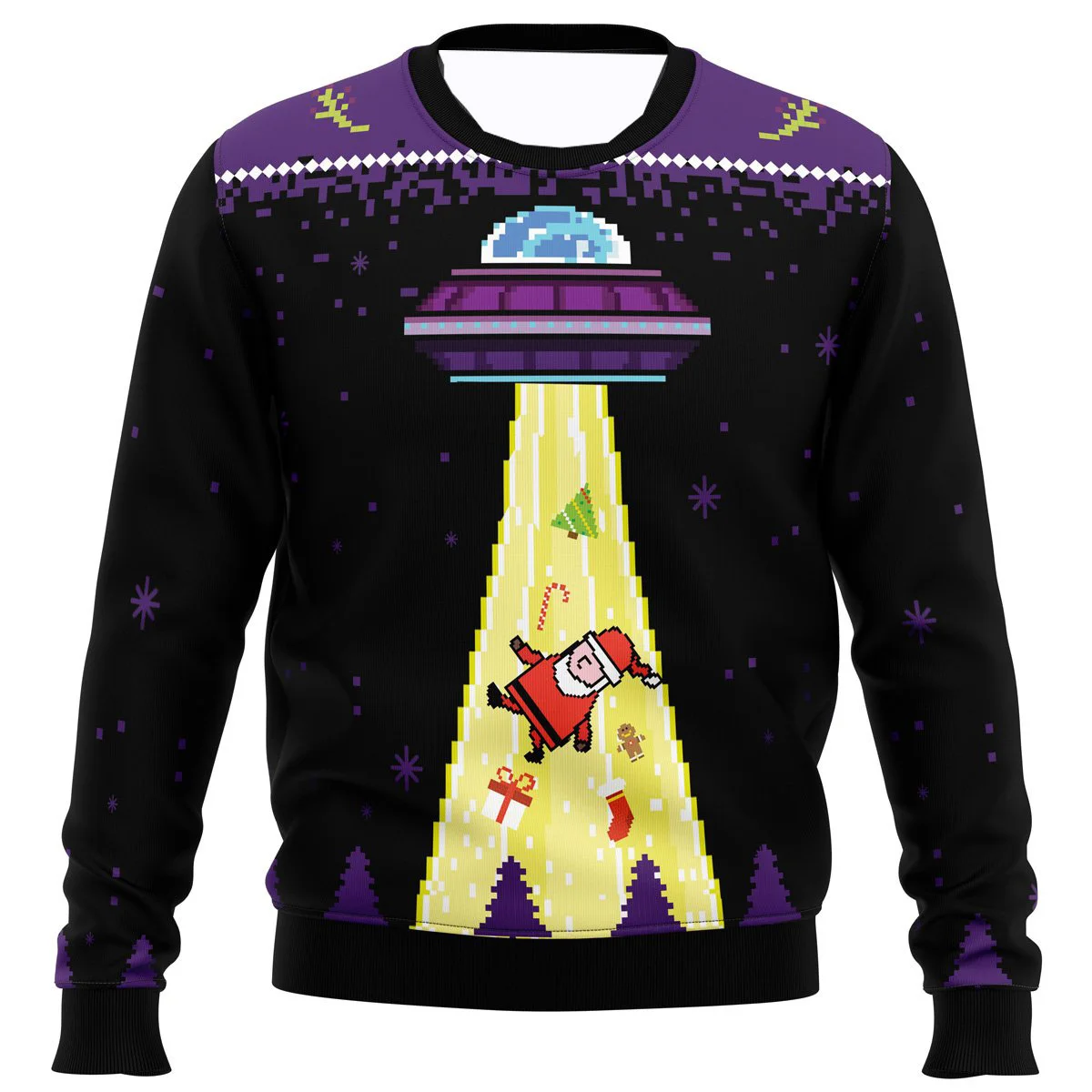 UFO Abduct Santa Ugly Christmas Sweater Funny Pixel Pattern 2025 New Fashion Kids/Adults Festive Pullover Winter Sweatshirt