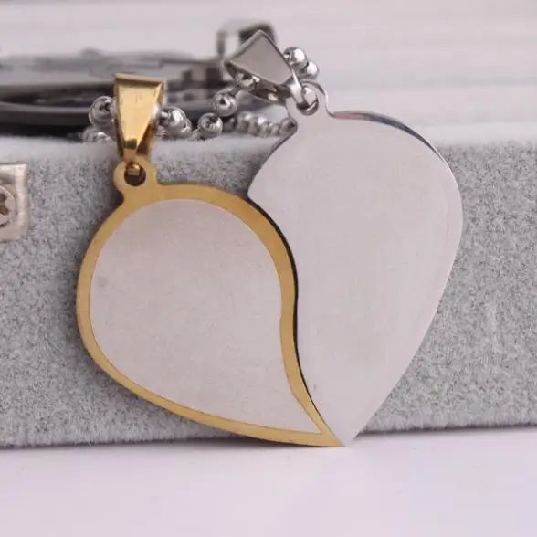 Lovers Edge In half hearts Stainless Steel pendant necklaces bead chain for men women wholesale