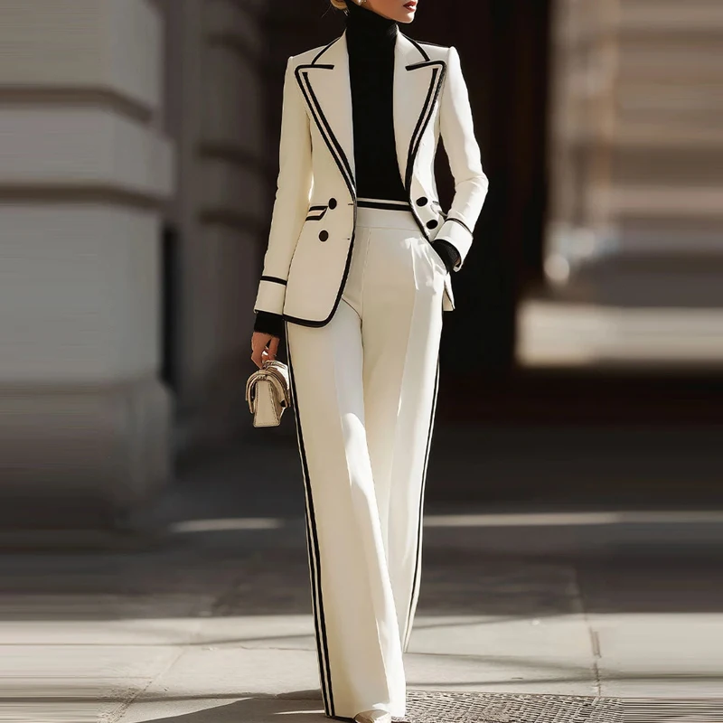 Casual Long Sleeved Jacket and Pants Party Outfits Spring New Office Women's Two Piece Fashion Color Blocked High Street Suit