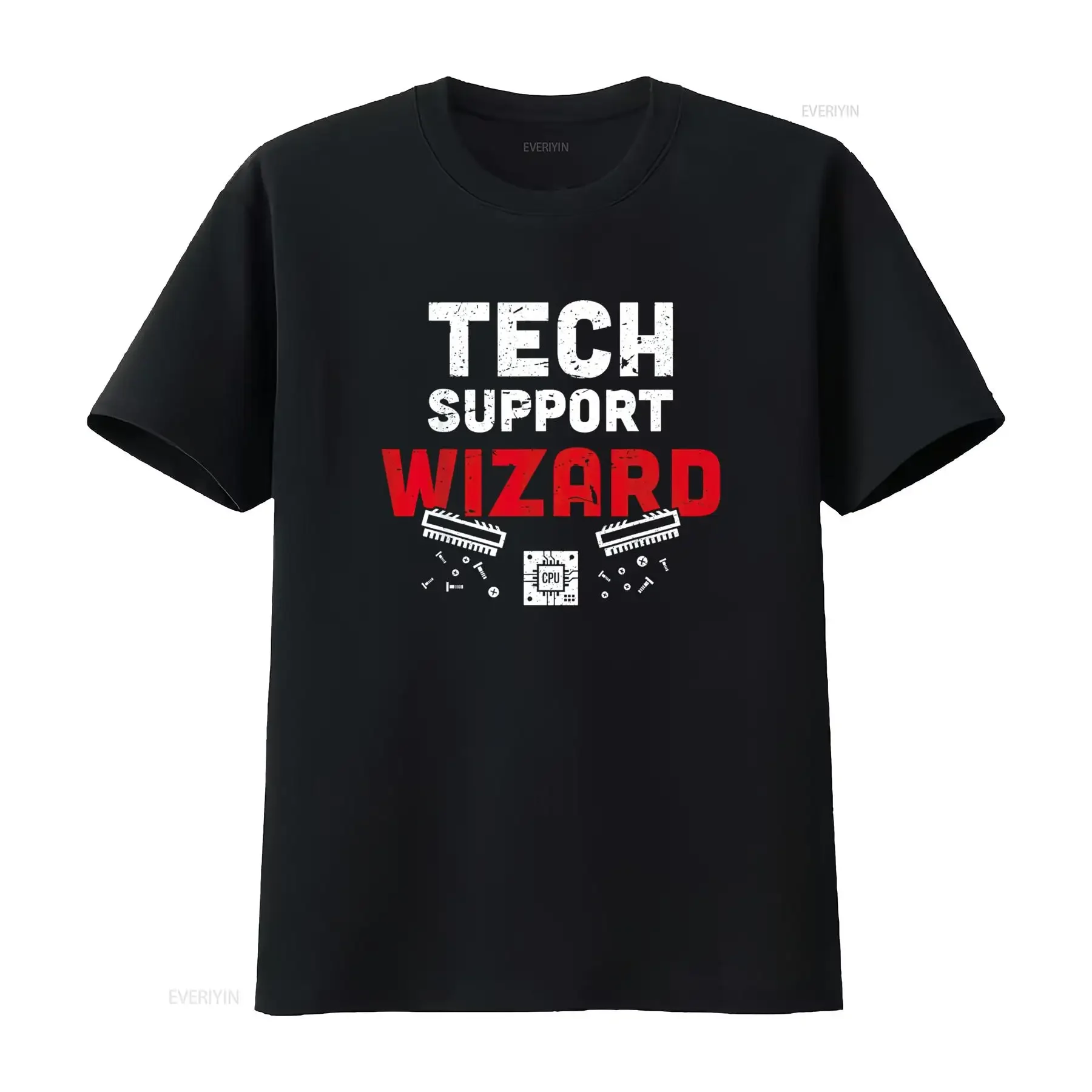 Tech Support Wizard Helpdesk and Computer Technician T Shirt vintage Washed Casual fashion streetwear Soft Versatile Slightly