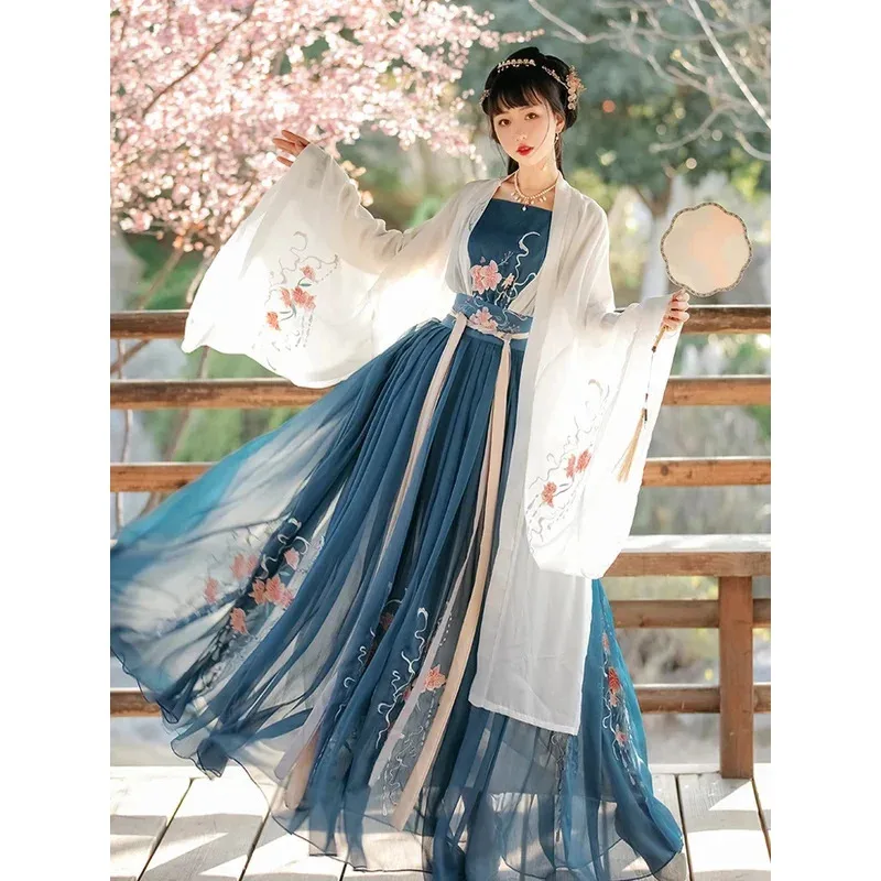 Women Chinese Traditional Hanfu Costume Lady Han Dress Embroidery Wei JIN Dynasty Party Show Dance Clothing NM261