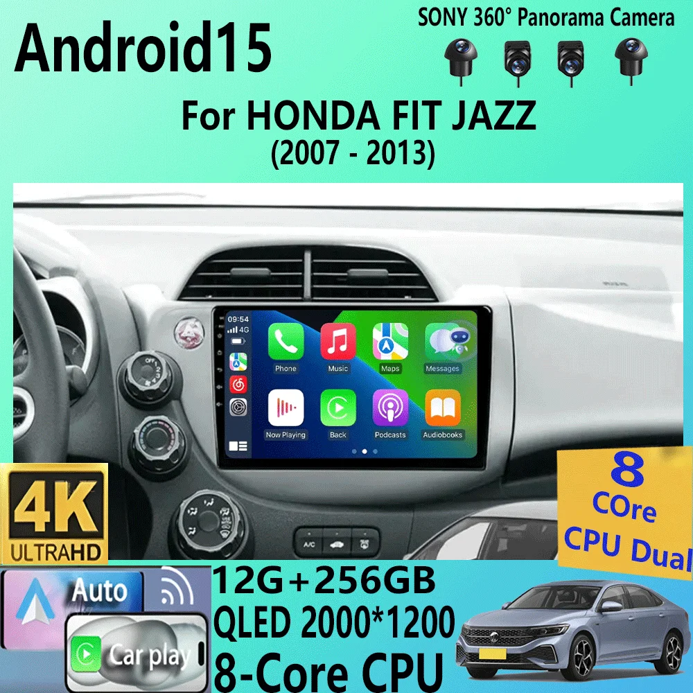 Android 15 Car Stereo Radio Multimedia Wireless Carplay Android Auto For HONDA FIT JAZZ 2008 2009 2010 2011 2012 2013 Player