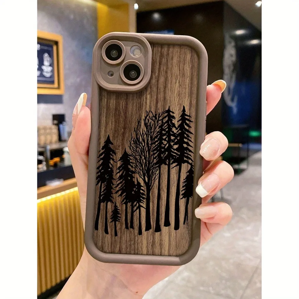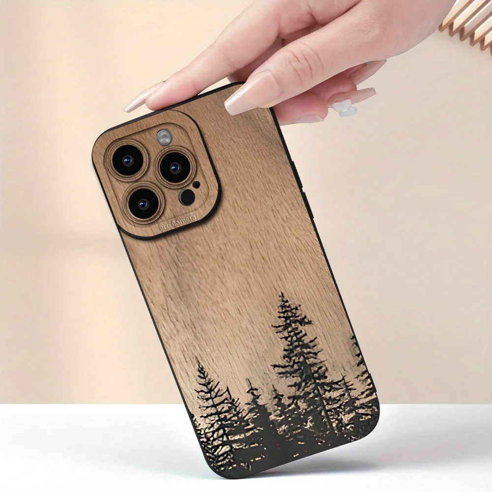Wooden pine forest pattern phone case suitable for iPhone 17 16 15 14 13 12 11 Pro/Max/Plus anti drop and shockproof back cover