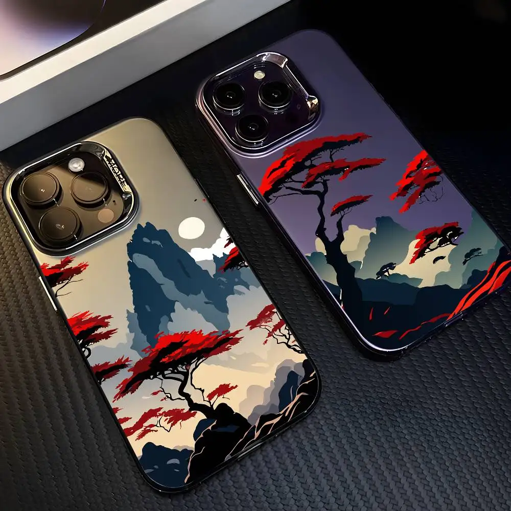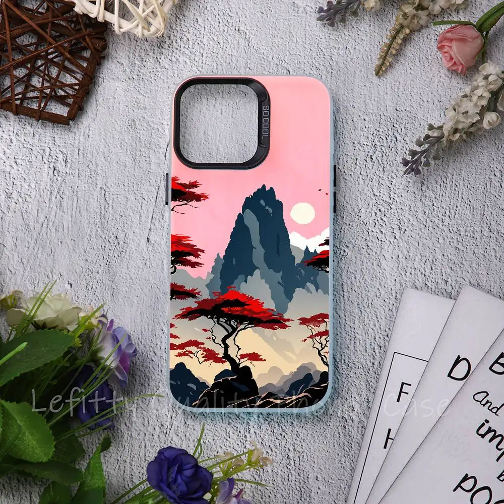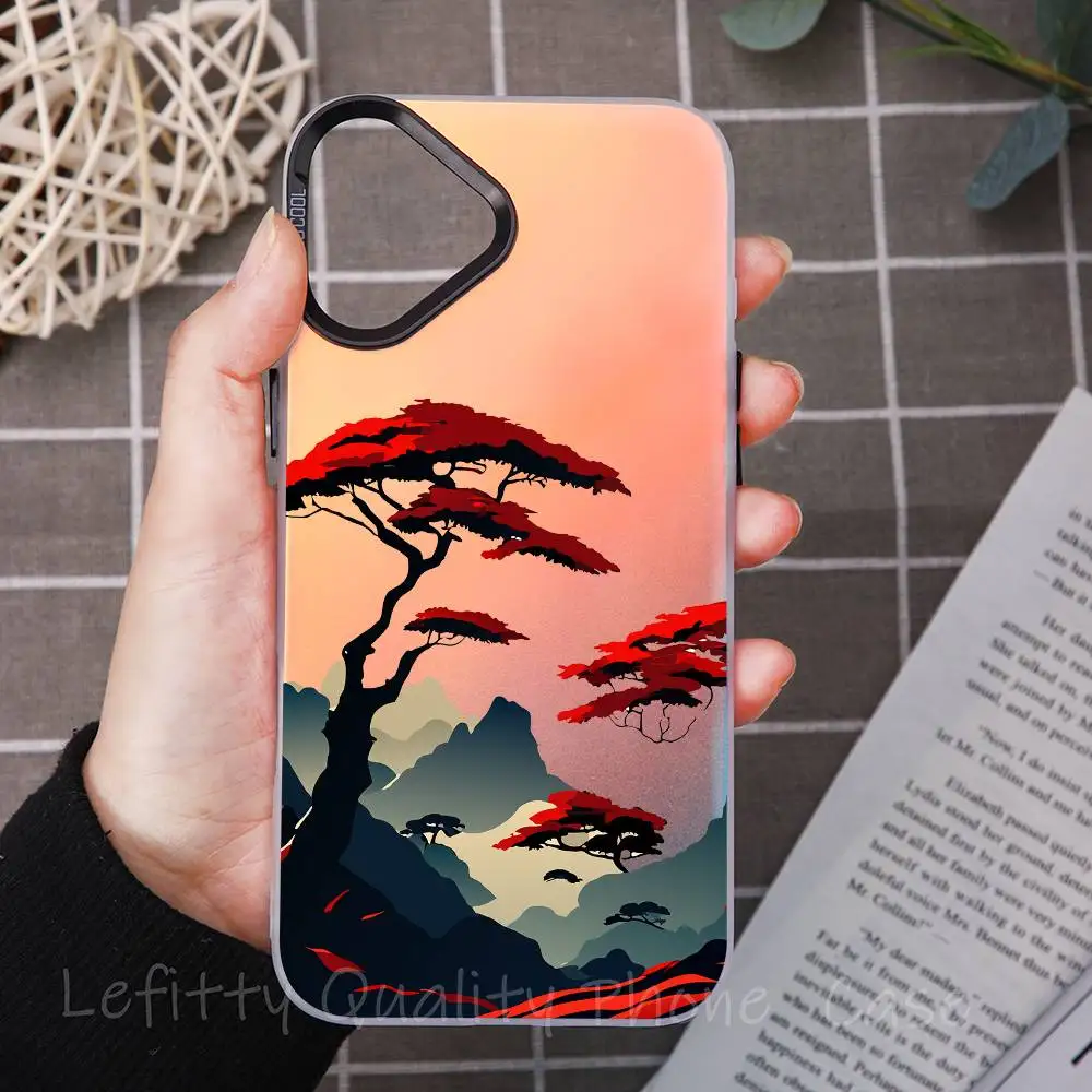 Mountain Pine Tree INS ART Phone Case For IPhone 17 16 15 14 13 12 11 Plus Pro Max Multicolor Aurora Laser Shockproof Funda
