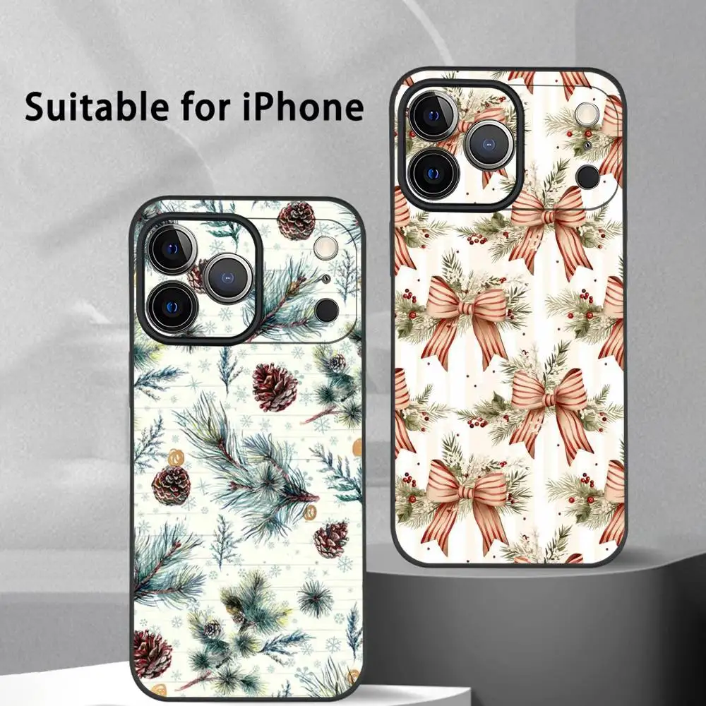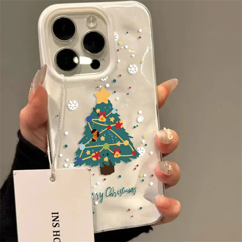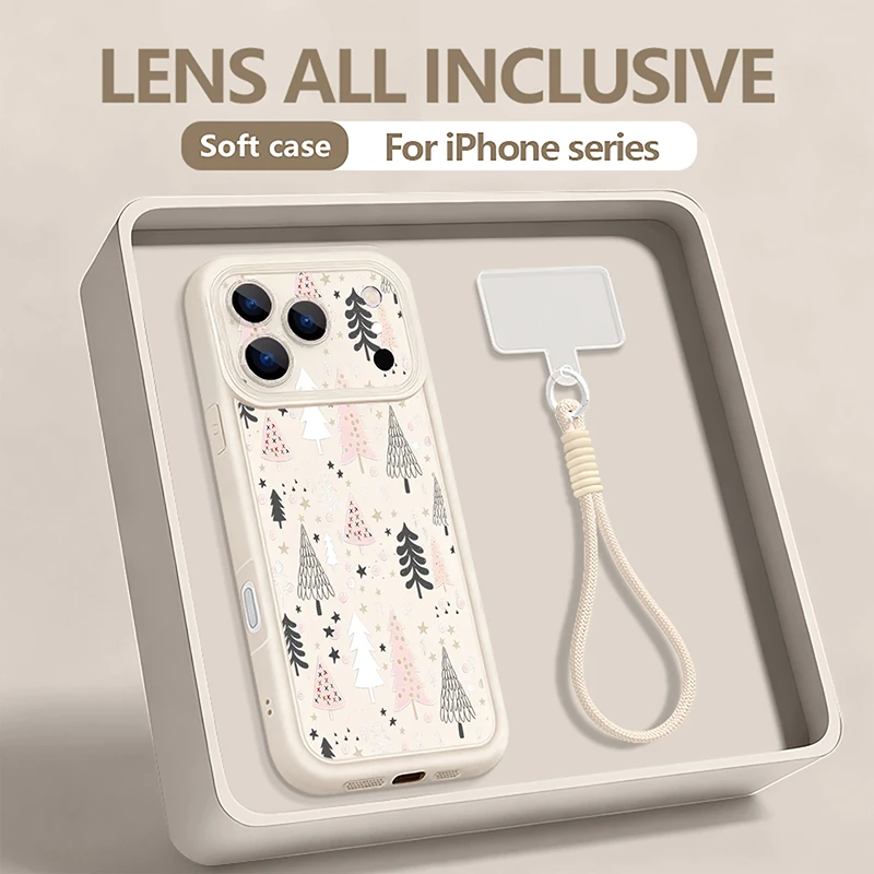 Snowflake Pine Tree Christmas Wrist Strap Case For iPhone 17 Pro Max Funda iPhone 16 Pro Max 15 14 13 12 11 16e Air Soft Cover