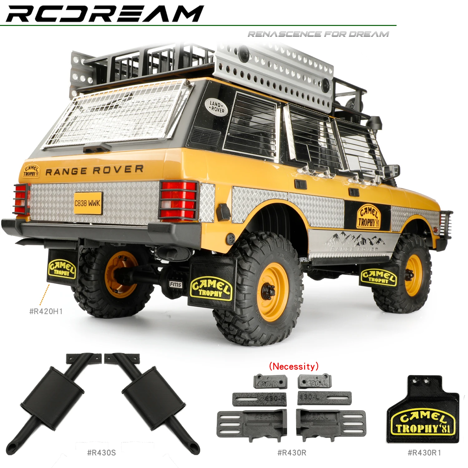 RCDream 1/10 3D Effect Soft Rubber Mud Flaps TPU Mudguard Film/ Tail Exhaust pipe Muffler for FCX10 Camel Range Rover Discovery