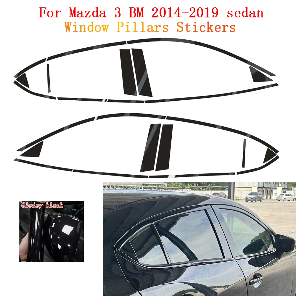 apply to Mazda 3 BM 2014-2019 sedan Window Chrome Delete Blackout ABC Pillars Glossy Black Stickers