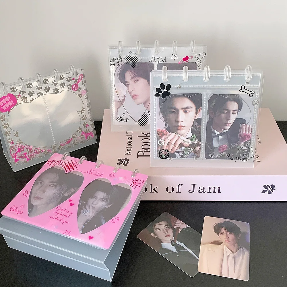 Mushroom Button 3 Inch Photocard Display Stand Album Transparent Two Grid Desktop Calendar Photo Storage Book