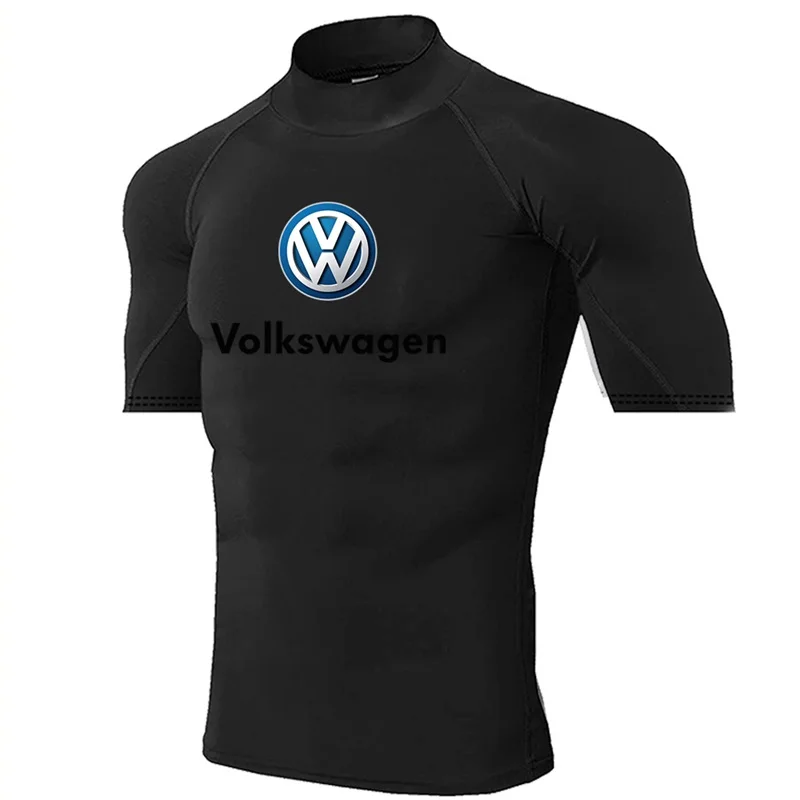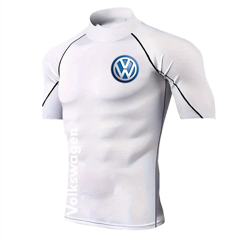 2025 Volkswagen logo printed tight fitting fitness suit, men's fitness gym sports running quick drying short sleeved T-shirt