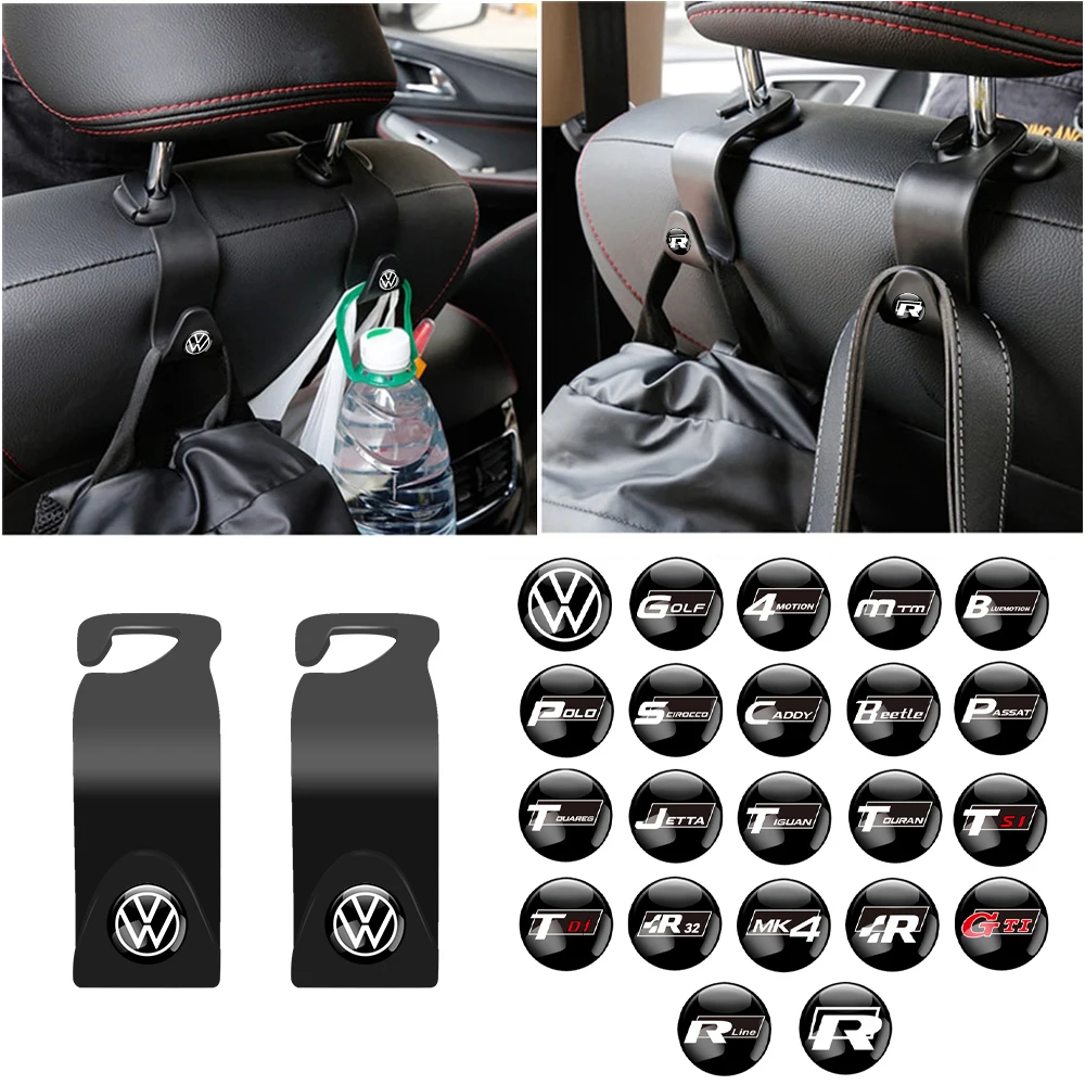 2/4Pc Car Rear Seat Headrest Hook Clothes Grocery Bags Bracket For Volkswagen Tiguan VW RLine Passat Polo GTI Golf Touareg Jetta