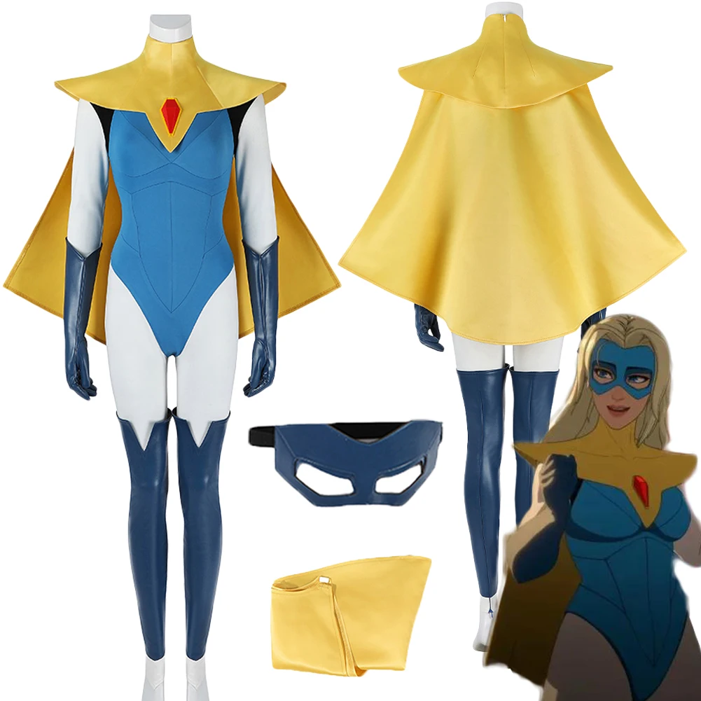 Disguise Dis Patch Blonde Blazer Cosplay Blue Jumpsuit Mask Yellow Cloak Costume Clothes Set Halloween Outfits Carnival Party