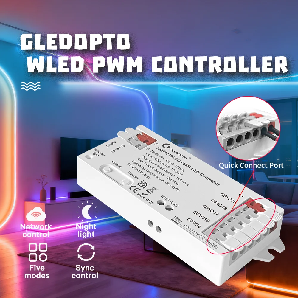 GL-C-211WL/GL-RC-001WL App For RGBCCT RGBW RGB WWCW CCT Dimmer ESP32 PWM WLED LED Controller 5 Modes in 1 DC12-24V WiFi GLEDOPTO