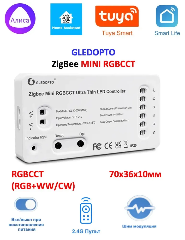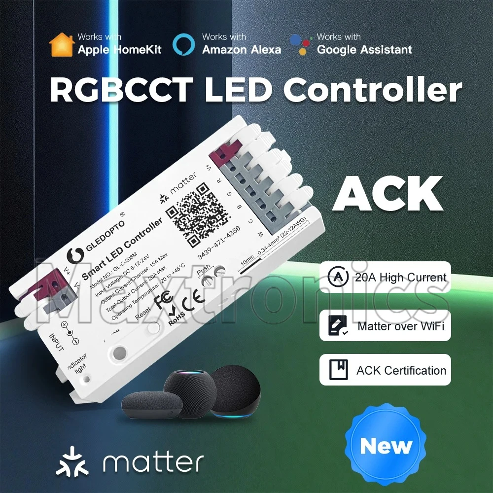 2026 ACK GLEDOPTO Matter 2.4GHz Wi-Fi Controller GL-C-208M Alexa APP Voice Control 20A Max for Dimmer White RGB CCT LED Strip