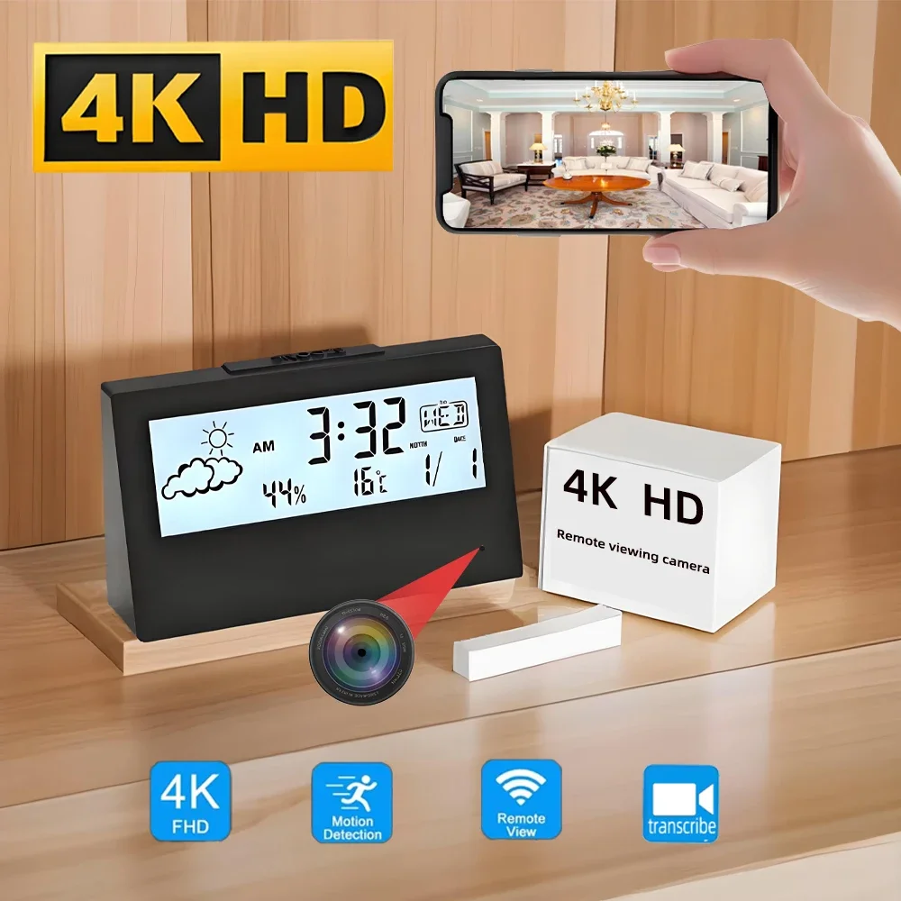 New upgraded and improved 4KHD mini clock camera, supporting infrared night vision, mobile detection, WIFI remote viewing
