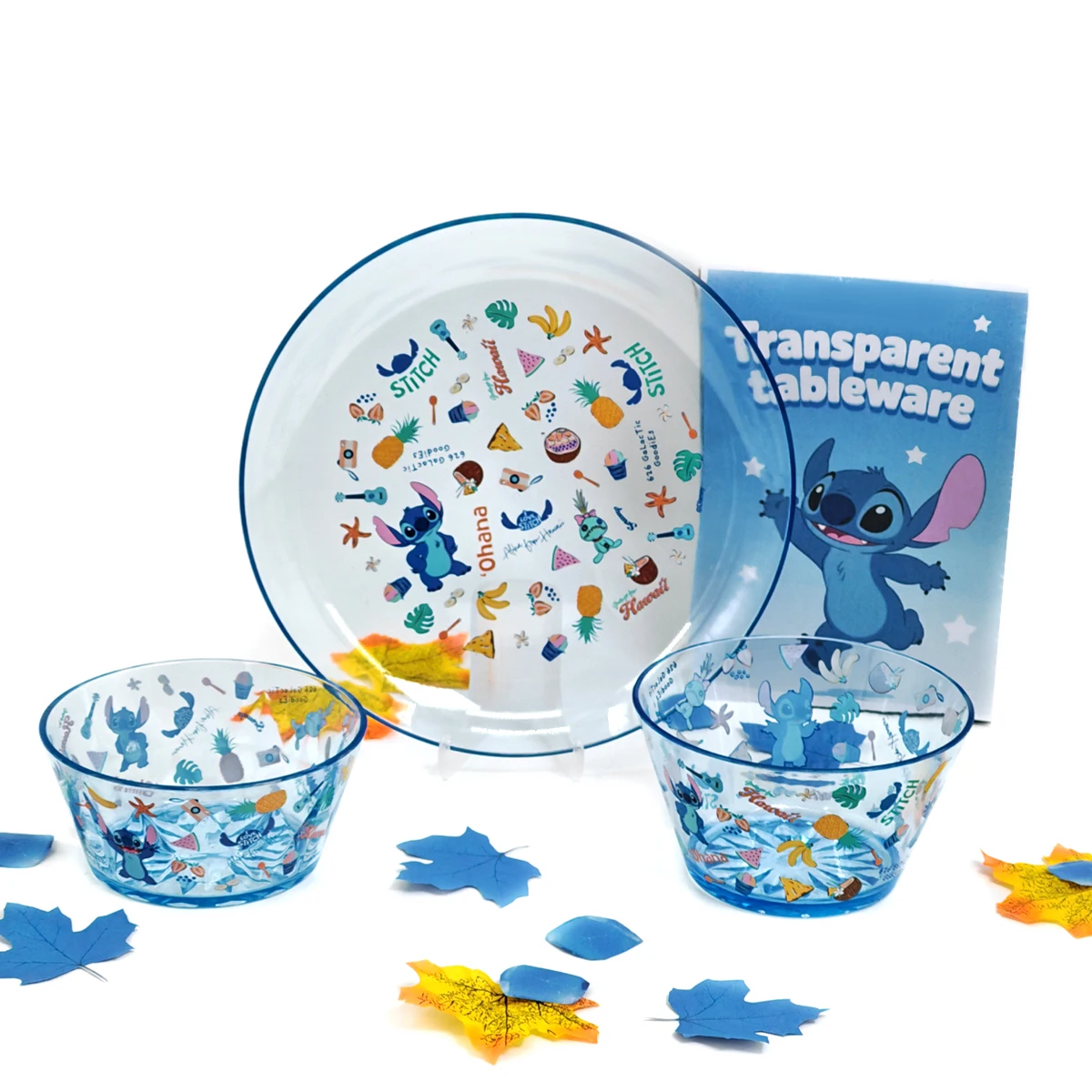 Plato transparente de plástico Stitch AS de dibujos animados de Disney, cuenco, vajilla de regalo para cena familiar y fiesta de cumpleaños, 1 ud.