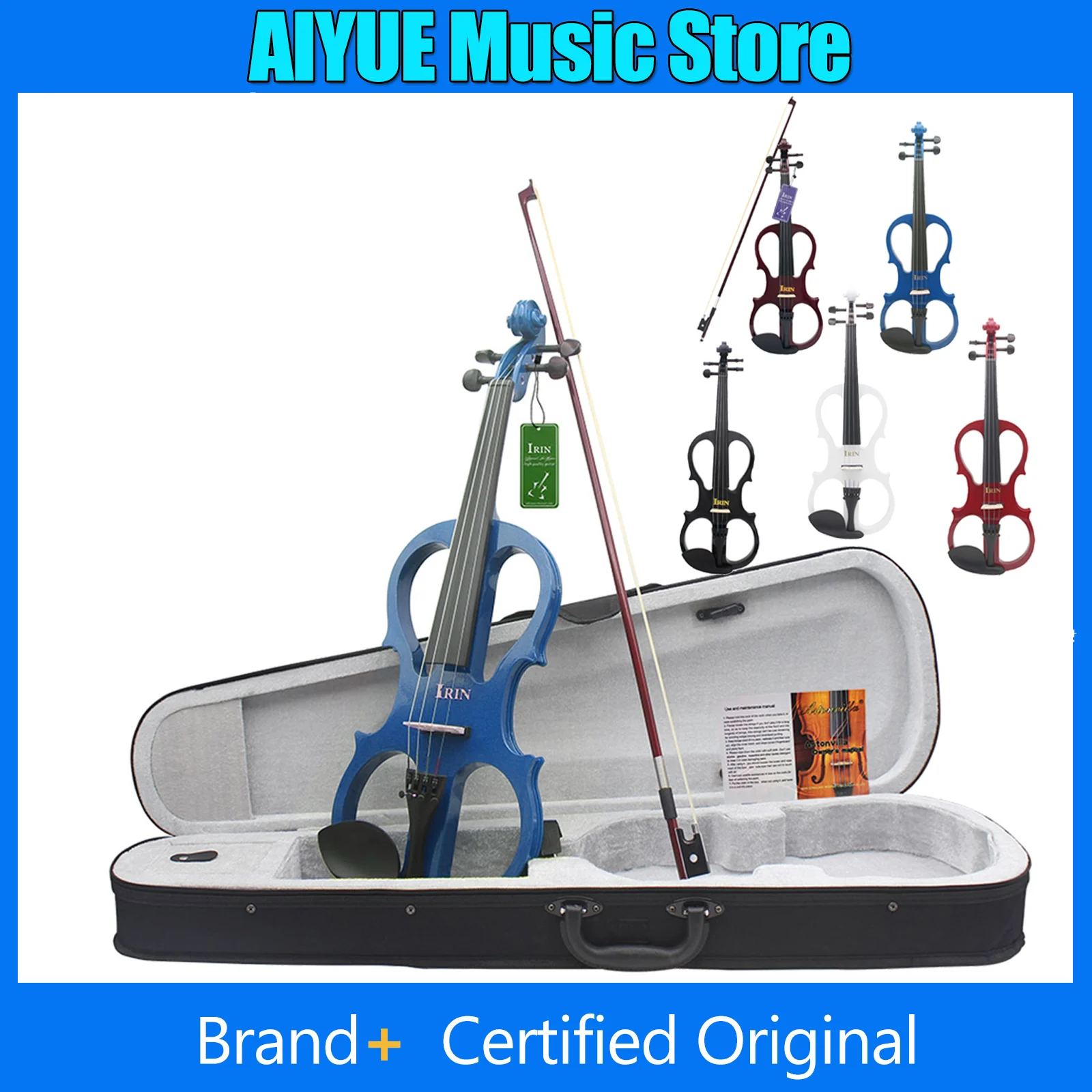 IRIN 4/4 violín eléctrico de madera maciza para principiantes, juego de violín para estudiantes con Cable de conexión de auriculares y piezas de caja de Piano