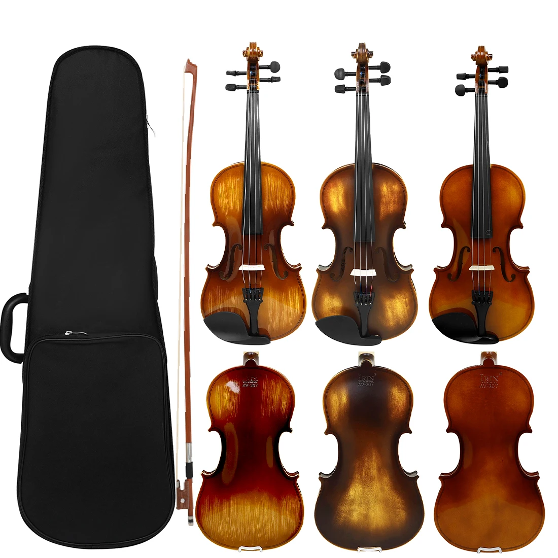 Juego de violín acústico profesional 1/2 1/4 1/8 3/4 4/4 Violín de tamaño completo con estuche y arco para principiantes, niños y adultos