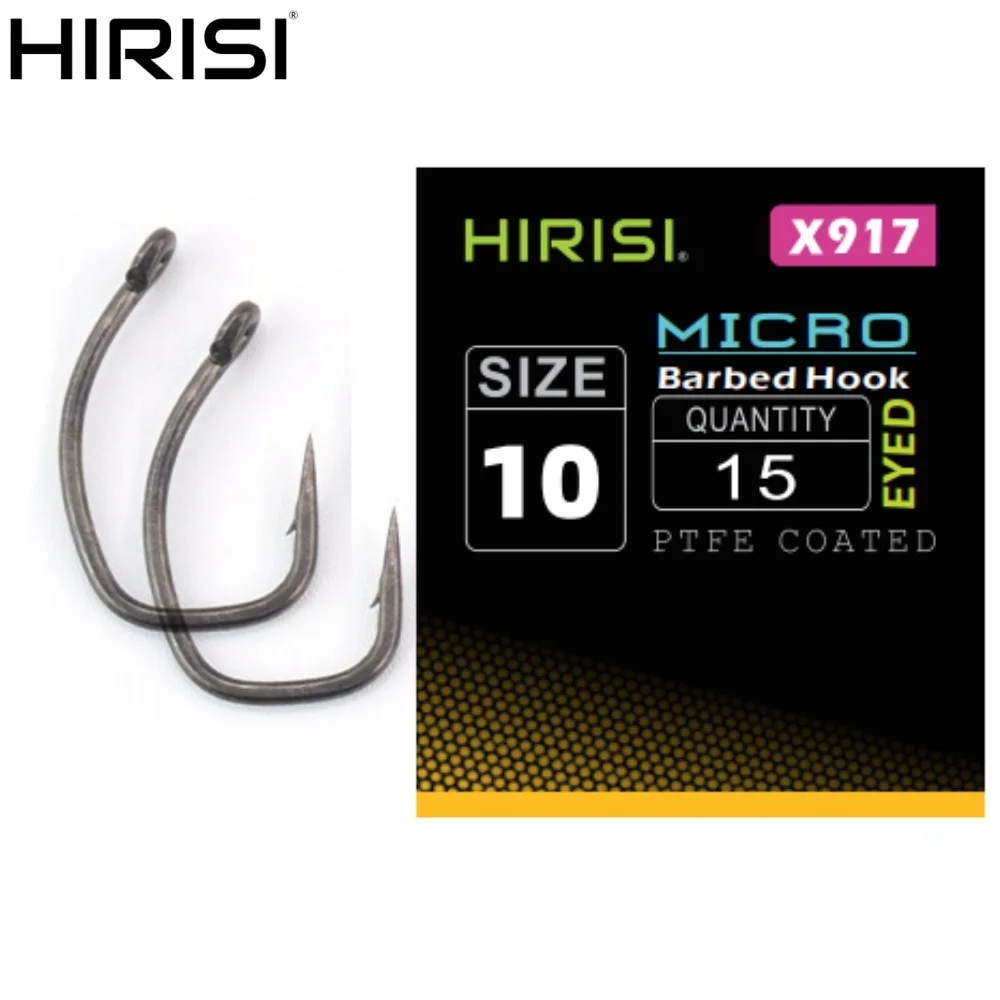 Hirisi 15 ganchos Micro Barb recubiertos de PTFE de acero rico en carbono para carpa X917
