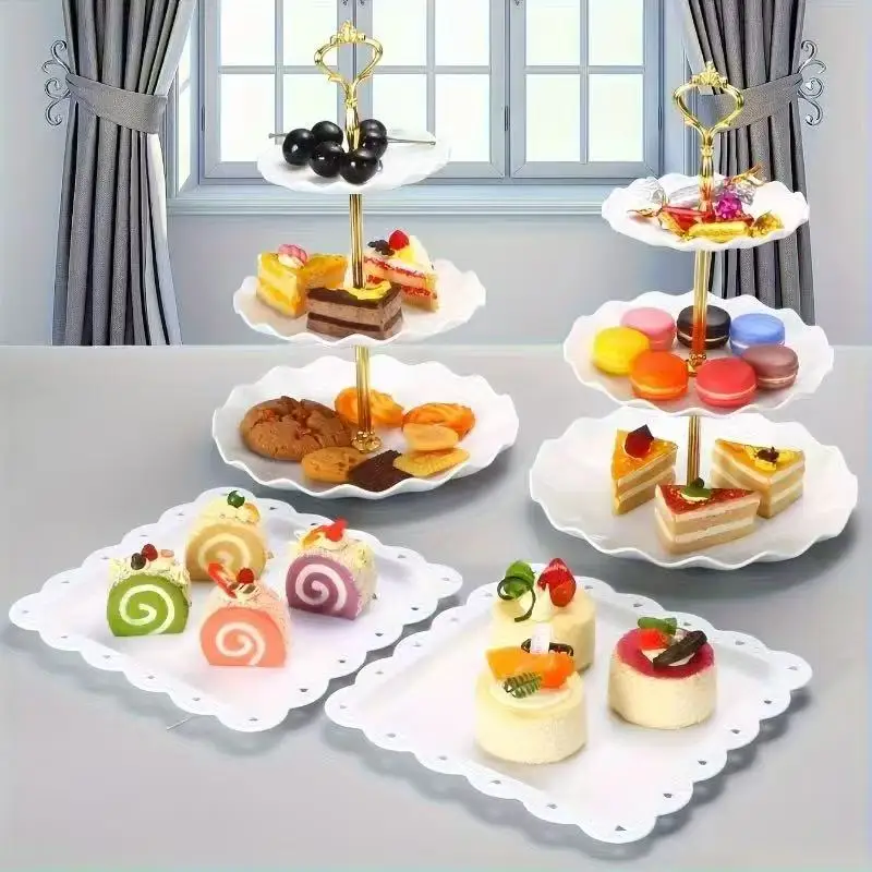 Juego de bandejas decorativas para comida, pastel, aperitivos y platos de frutas para boda, fiesta, fiesta, Baby Shower, cumpleaños, fácil de limpiar, 1/3/4/5 Uds.