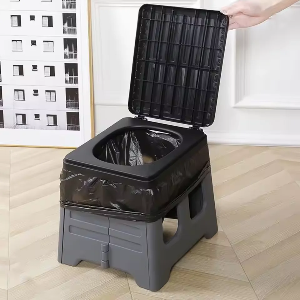 Asiento de inodoro plegable portátil, bolsas de basura opcionales para acampar al aire libre, inodoro multifunción, orinal de emergencia plegable para viaje, 12-72 Uds.