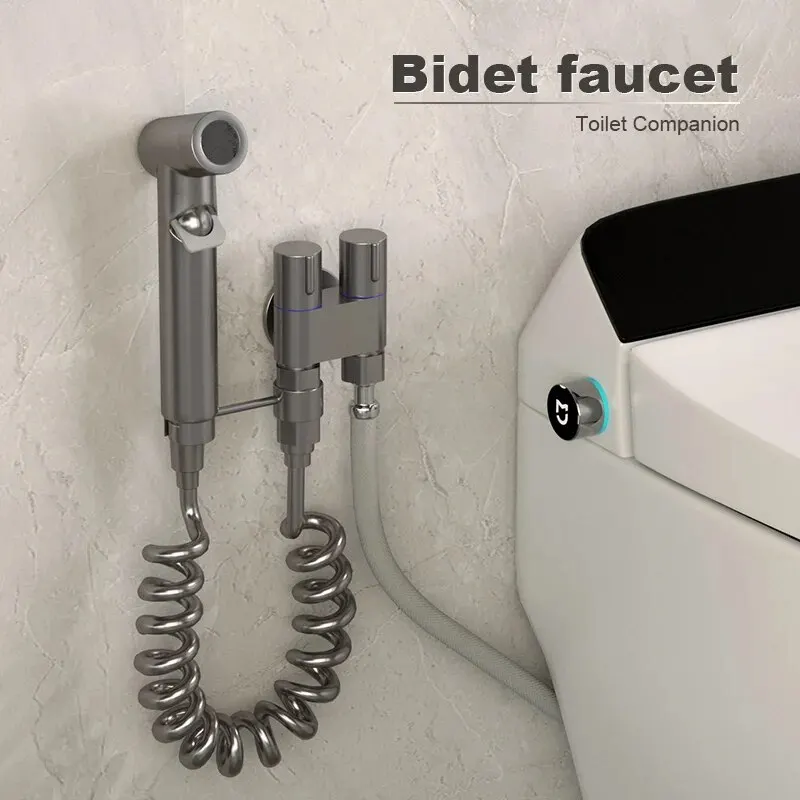 Rociador de bidé para ducha higiénica, cabezal de ducha, válvula angular de doble salida, accesorios de baño para bidé de doble salida montados en la pared