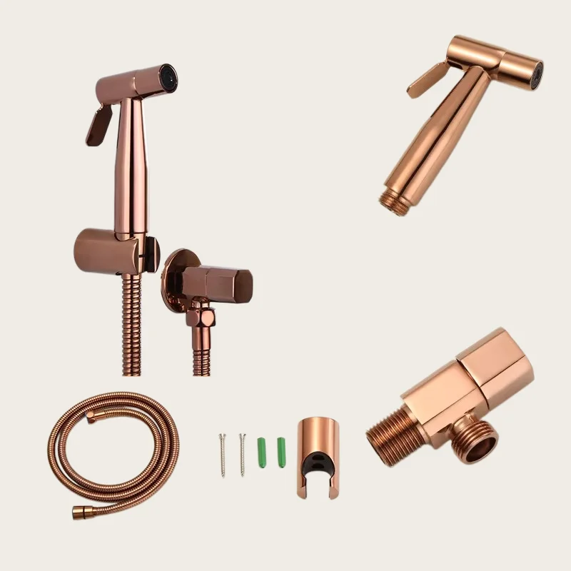 Grifo de bidé de oro rosa, kit de rociador de inodoro de agua fría en oro cepillado, rociador de inodoro de latón gris, cabezal de ducha de mano