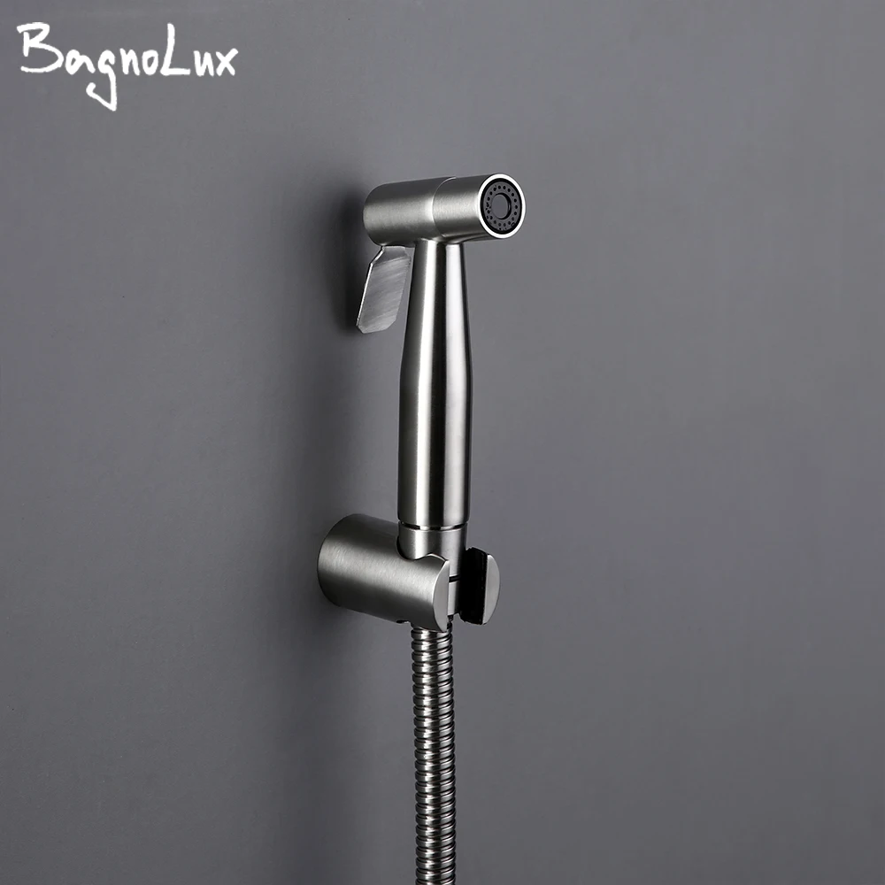 Bidé de mano de níquel cepillado y negro, inodoro de acero inoxidable montado en la pared, fácil de instalar, juego de pulverizador para el baño