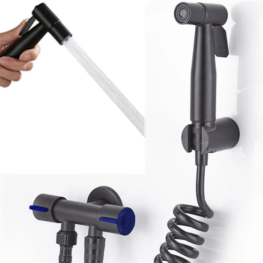 Bidé de inodoro negro de acero inoxidable G1/2, rociador de grifo de mano, juego de bidé, limpieza en aerosol para baño, herramienta de limpieza de suelo de cocina