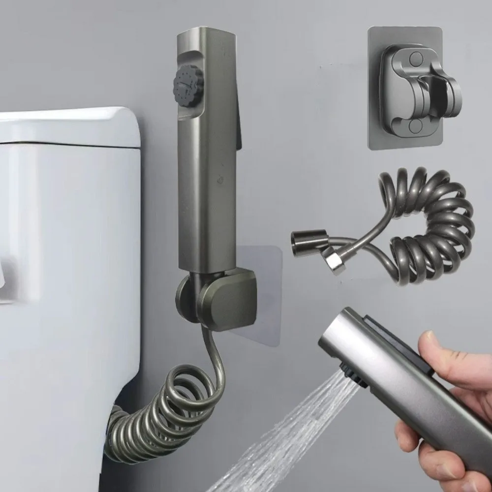 Rociador de bidé de mano de acero inoxidable, pistola rociadora de inodoro multifuncional 2 en 1 con válvula angular de agua, 1 ud.
