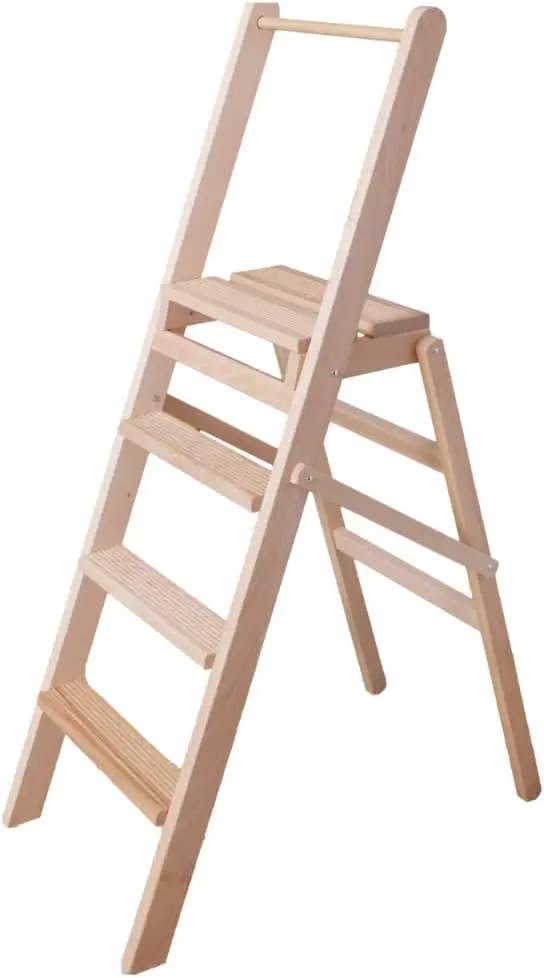 Escalera cuadrada plegable, 4 escalones, estructura de acero, escalones antideslizantes, mango de seguridad, carga de 150 kg, revestimiento de goma