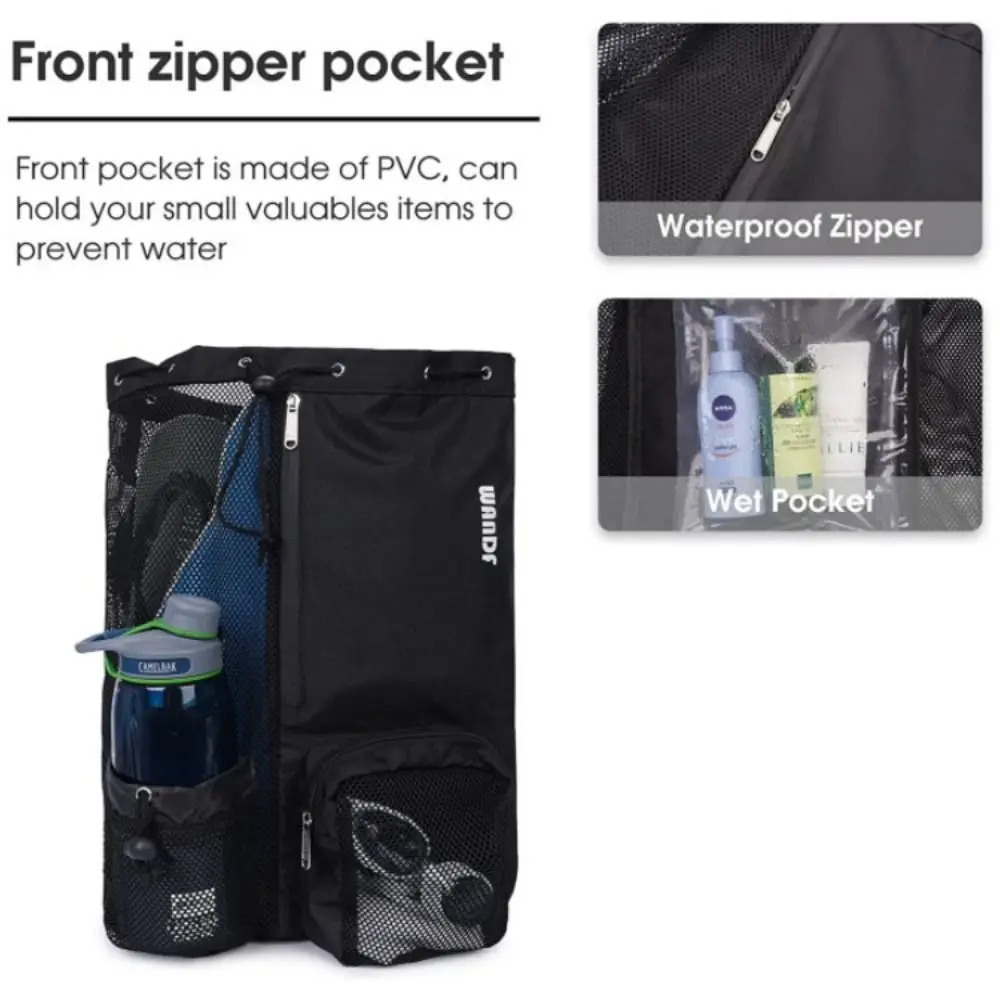 Mochila con bolsillo impermeable y cordón de malla, bolsa de natación de color sólido para Fitness, bolsas de almacenamiento de playa de gran capacidad, bolsa deportiva para exteriores