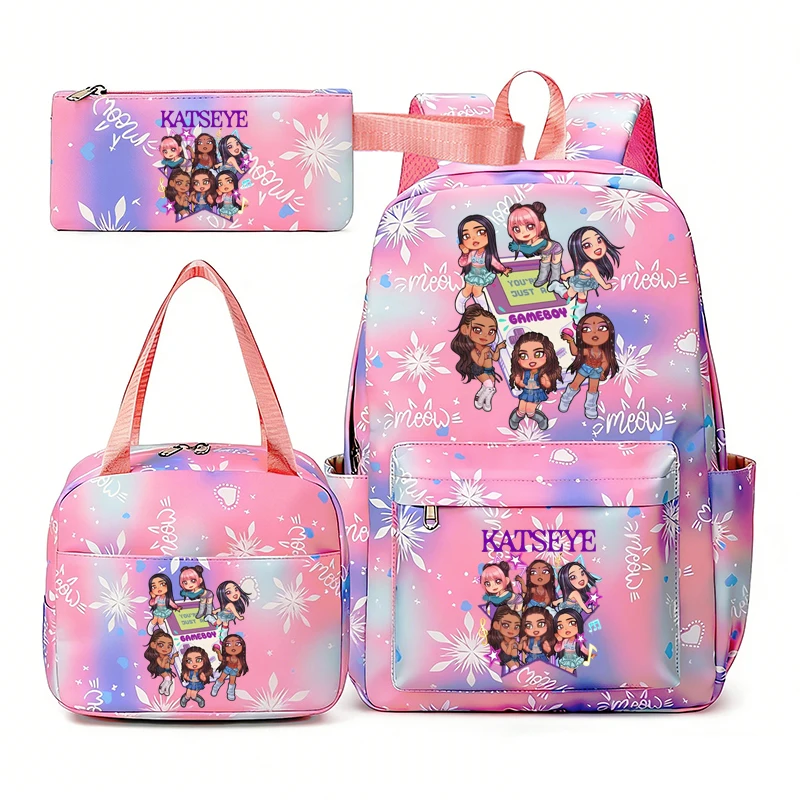 Katseye mochilas musicales bolso de hombro de ocio mujeres hombres Mochila para ordenador portátil Mochila de viaje para mujer Mele 3 uds