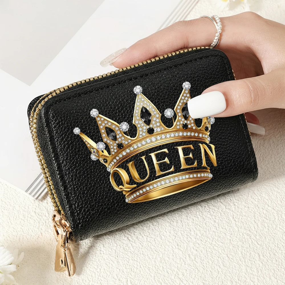 Cartera para tarjetas de crédito con corona de reina para mujer, monedero con doble cremallera, tarjetero RFID, bolso negro para hombre, cartera pequeña y ligera, regalo
