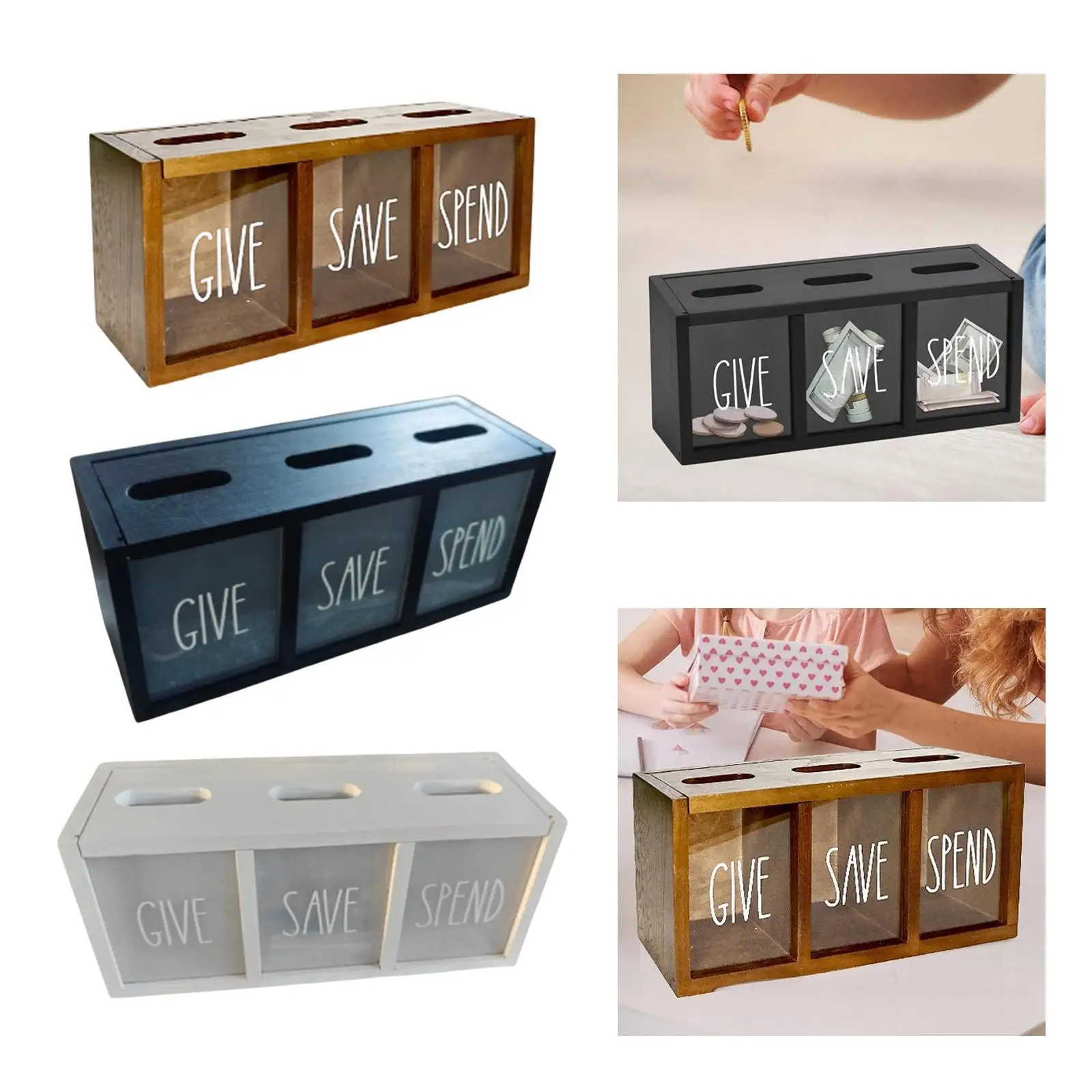 Caja de dinero para adultos con compartimentos, contenedor para el hogar, regalo del año, caja de almacenamiento de madera