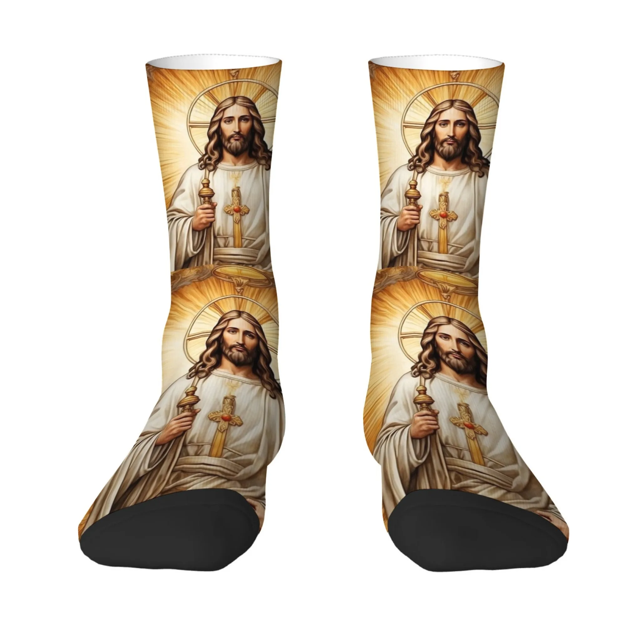 1 par de calcetines unisex con tema del Santo Jesús, regalos, cómodos y a la moda, adecuados para todas las estaciones, impresión transparente, lavables a máquina