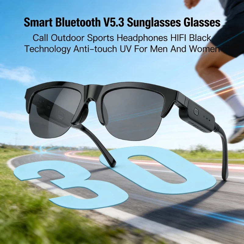 Gafas de sol inteligentes con Bluetooth V5.3, auriculares para deportes al aire libre, tecnología HIFI negra, anti-táctil, UV, para hombres y mujeres