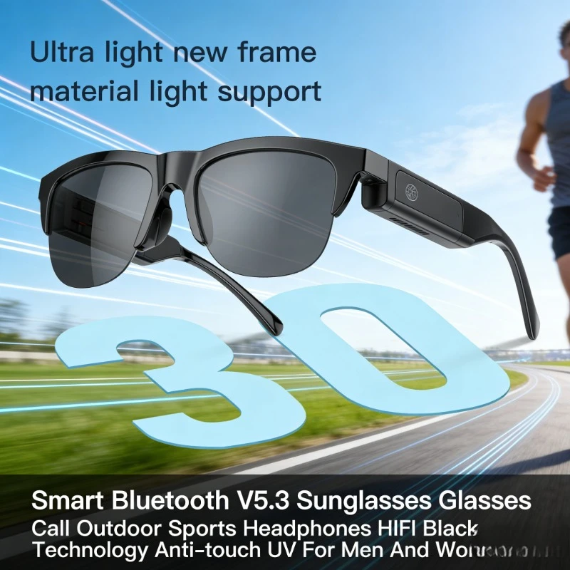 Gafas de sol inteligentes con Bluetooth 5,3, anti-UV, sonido HIFI, auriculares inalámbricos para deportes al aire libre, gafas antitáctiles para hombres y mujeres
