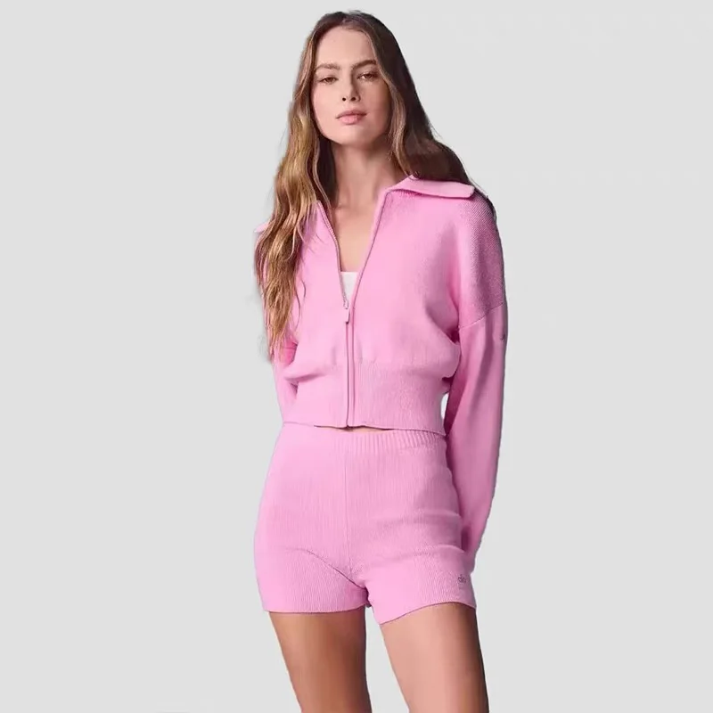 AL Scholar Chaqueta recortada de punto con cremallera completa ZLa chaqueta ajustada de entrenamiento con cremallera para mujer
