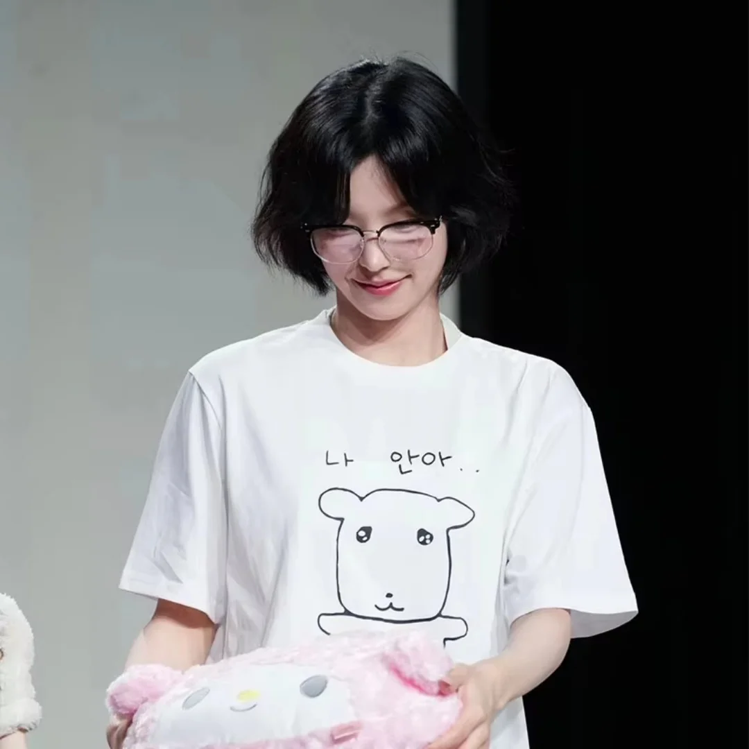 Camiseta de manga corta con gráfico divertido y bonito para mujer, Top informal holgado para fanáticos del K Pop, uso diario y salidas de ocio