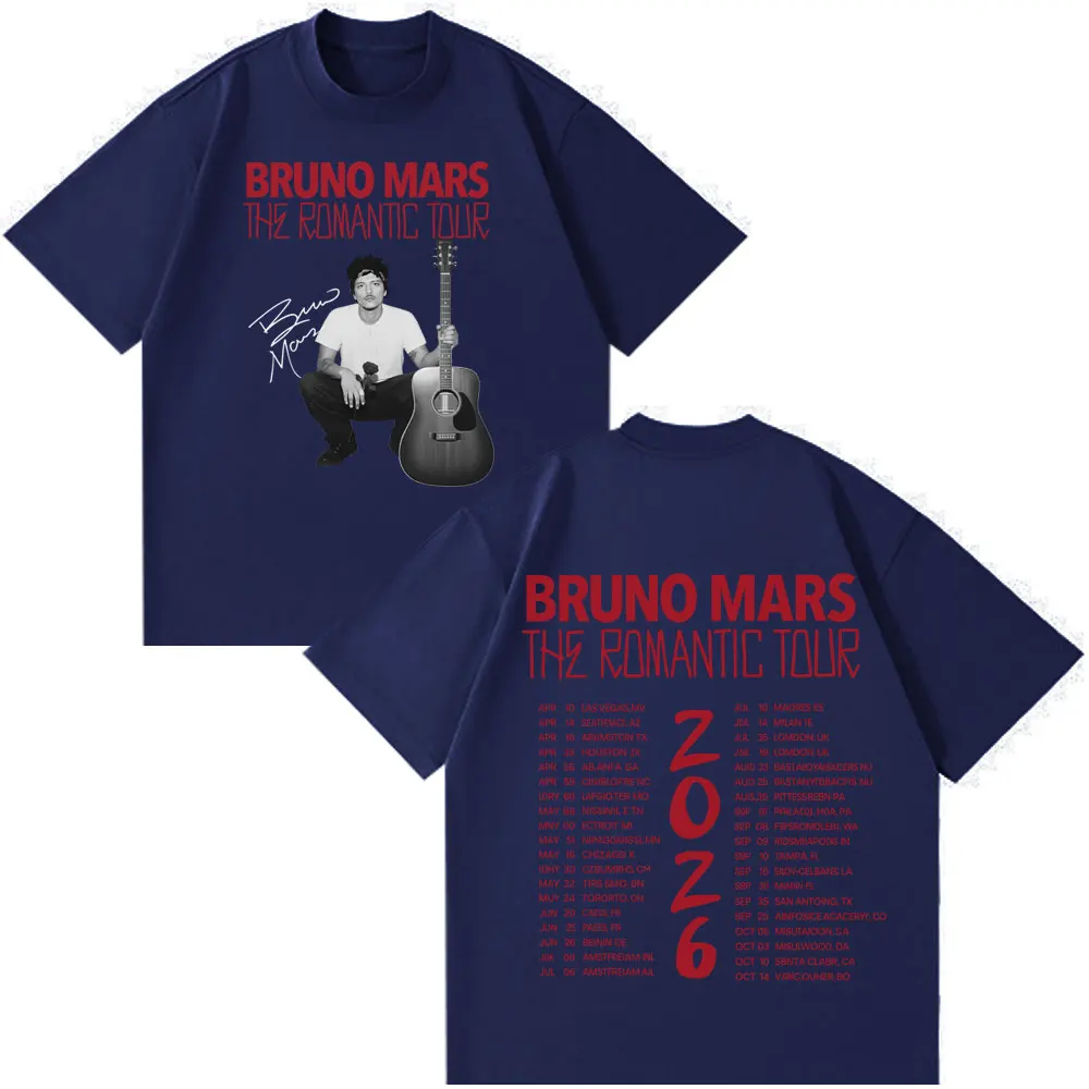 Camisetas con gráficos del rapero Bruno Mars Romantic Tour 2026, camisetas Vintage para hombres y mujeres, camisetas holgadas de algodón de manga corta con cuello redondo estilo Hip-hop